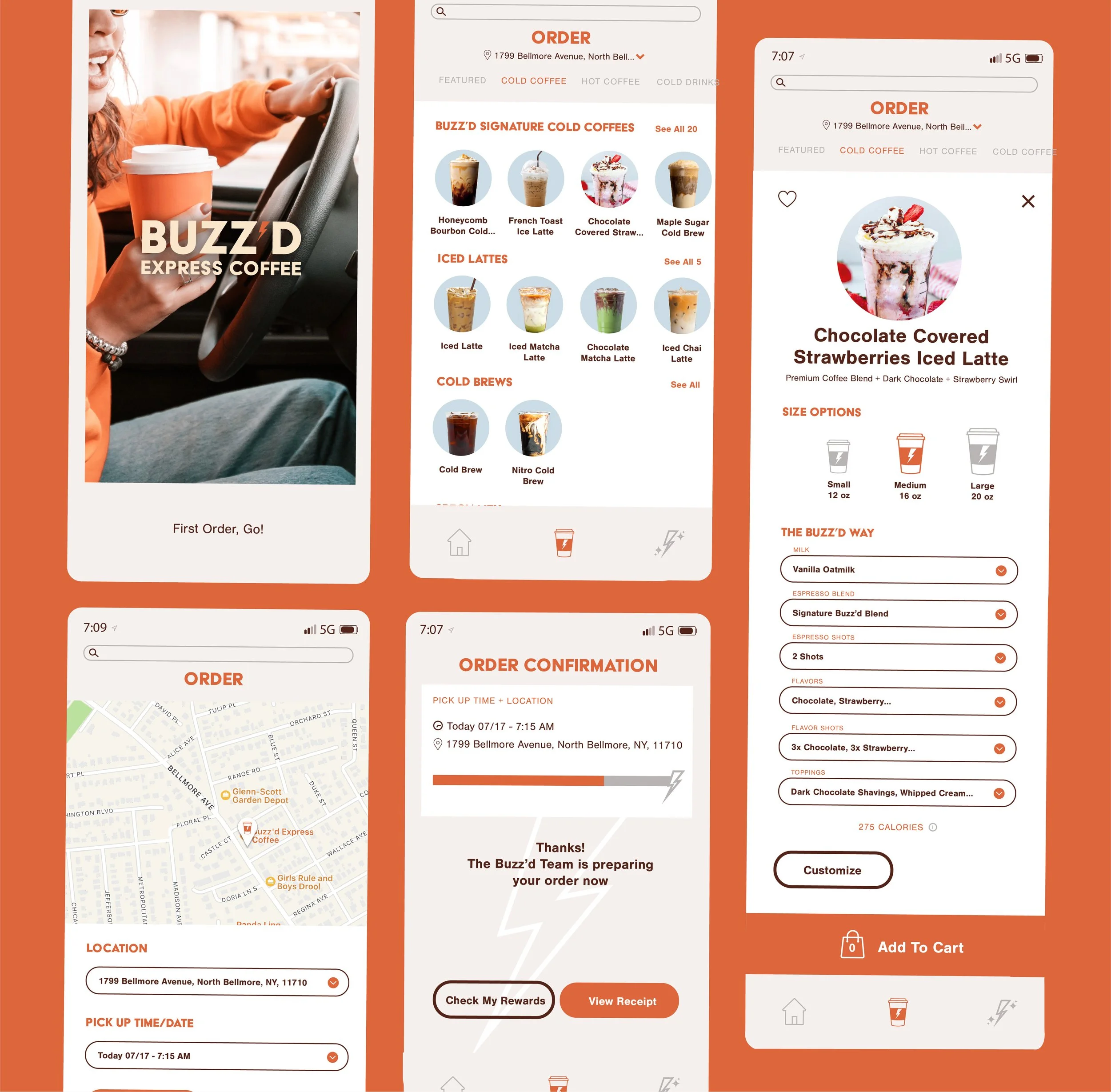 Designed dynamic packaging, custom icons, and a mobile app concept to support Buzz’d’s fast service model. The visual system balances bold, energetic branding with intuitive functionality, helping Buzz’d Express Coffee maintain its reputation as the go-to destination for coffee lovers on the move — whether at a local shop, a mobile truck, or through the app.