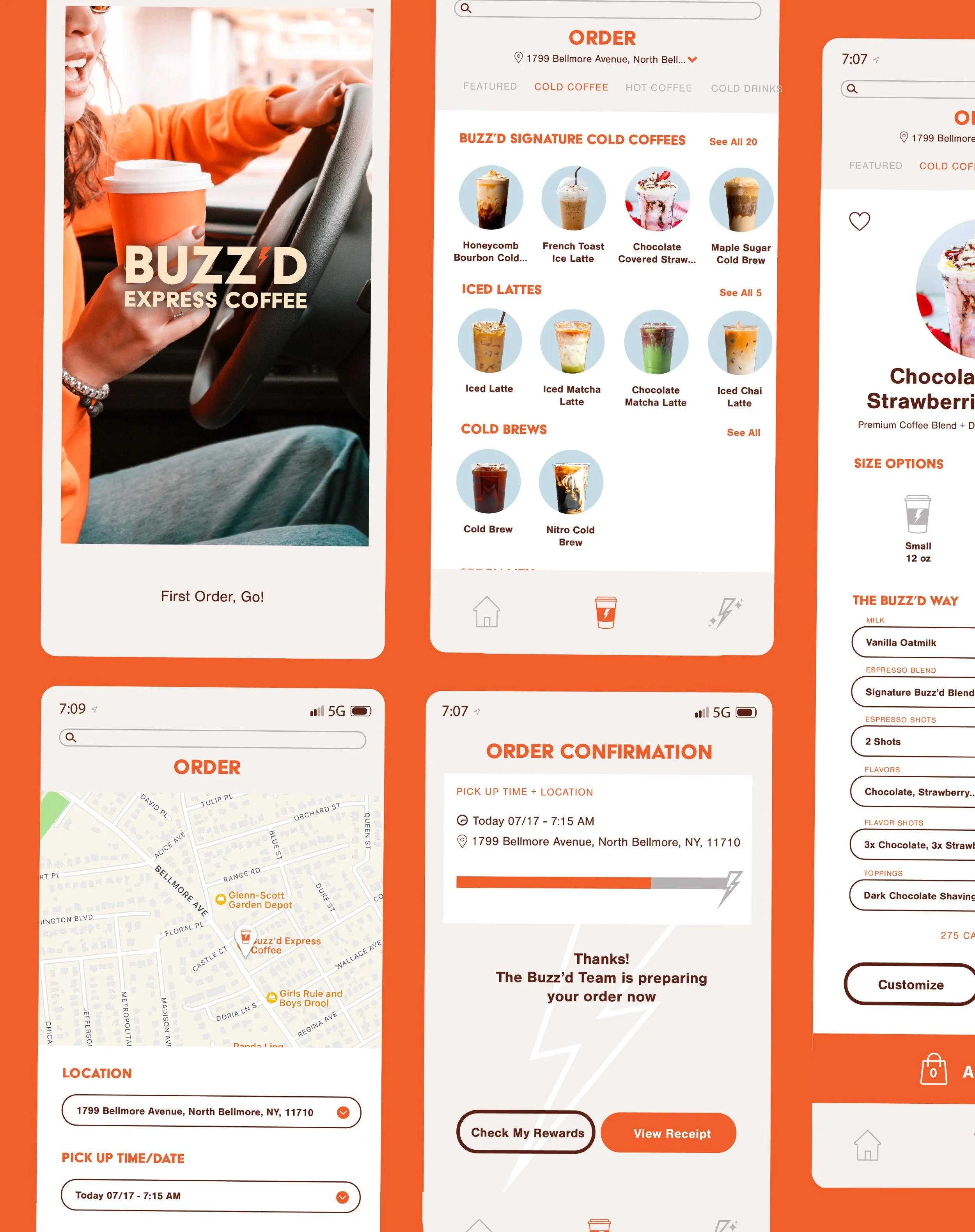 Energetic packaging and app concepts for Buzz’d’s new canned coffee line — crafted to fuel busy lives with bold flavor and effortless convenience.
