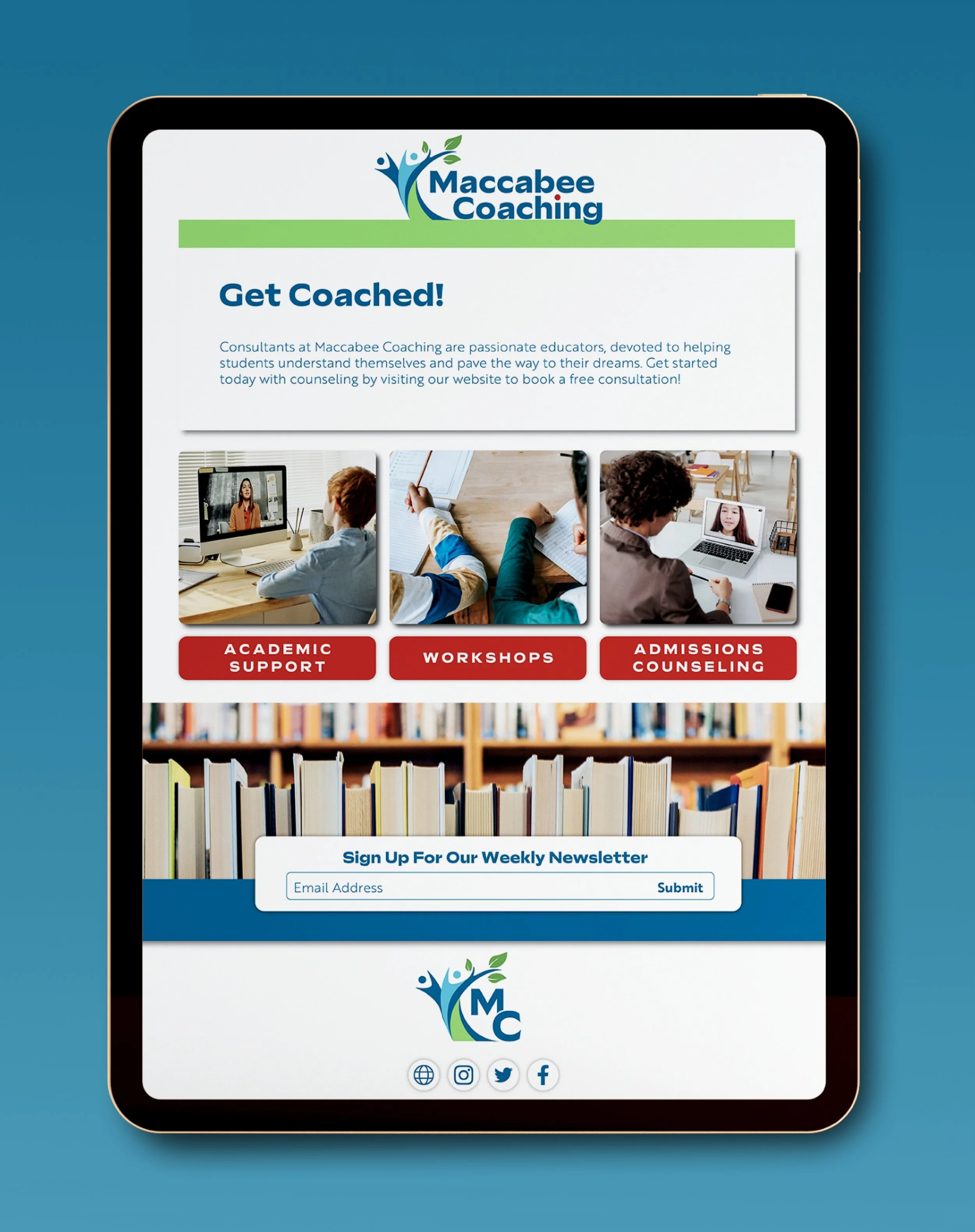 A clean, approachable brand identity system that connects Maccabee Coaching to its Academy roots while establishing its own professional presence.